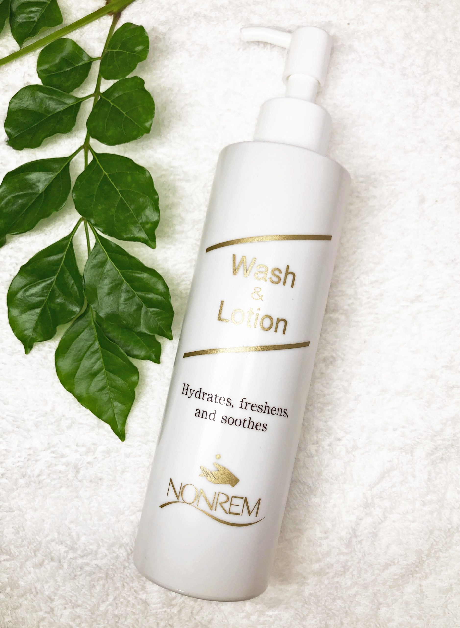 ノンレム化粧品の代表商品「ウォッシュ&ローション[液状洗顔料]」石けんなのにつっぱらない。洗顔直後はまるで化粧水や美容液をつけたあとのような「ツルツル」「スベスベ」の洗い上がりでリピーター続出中。一度使ったら手放せません。